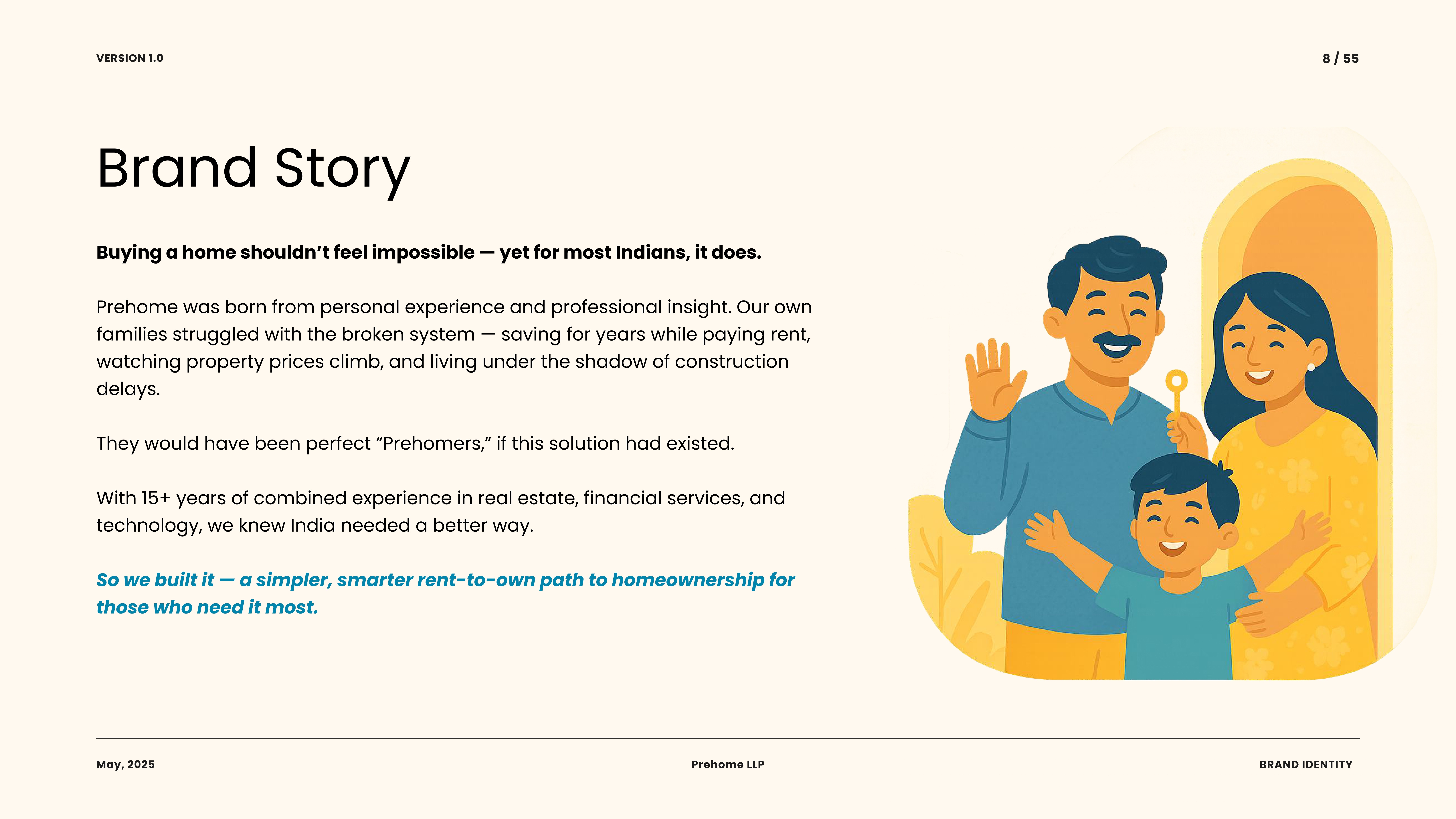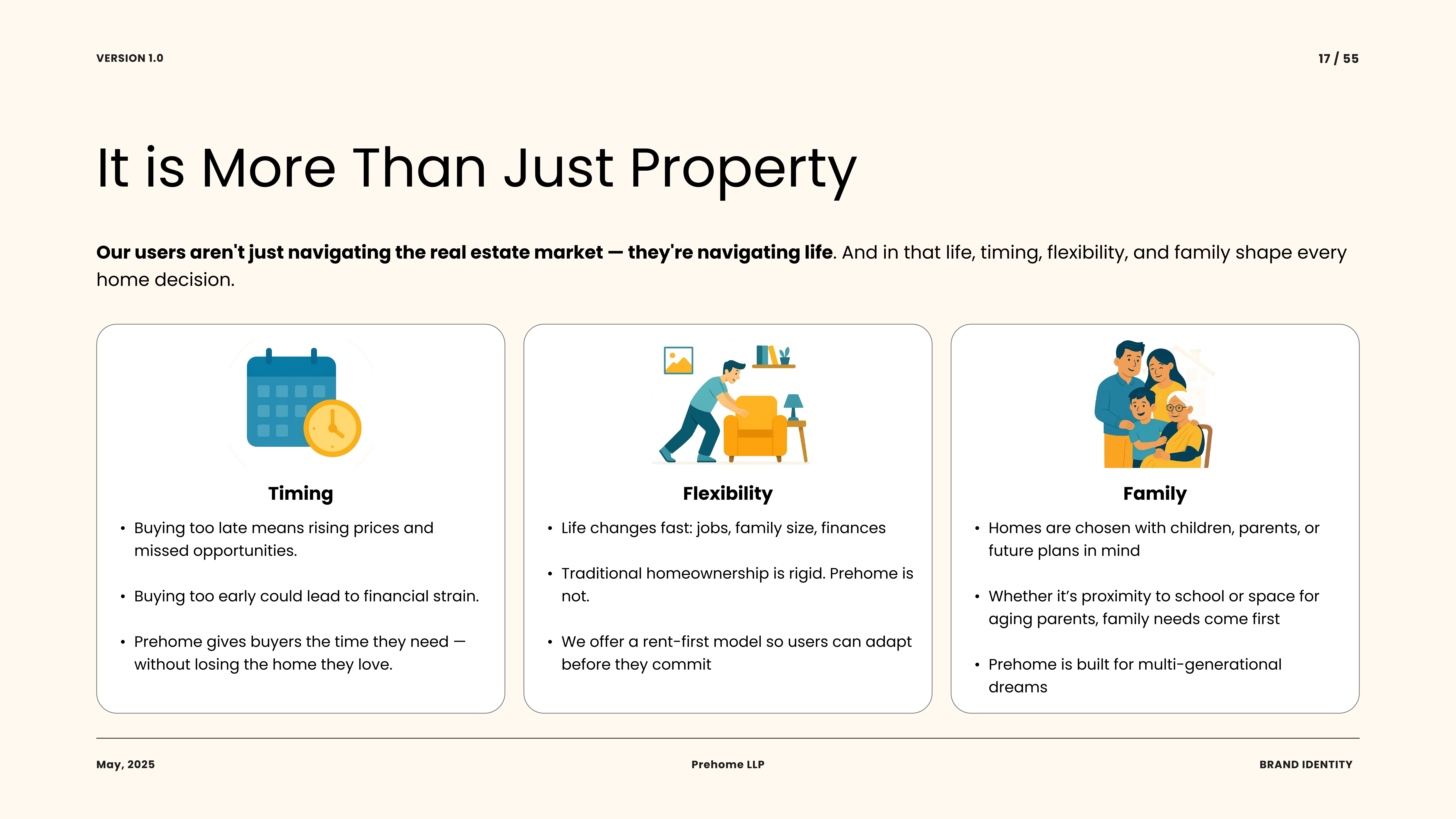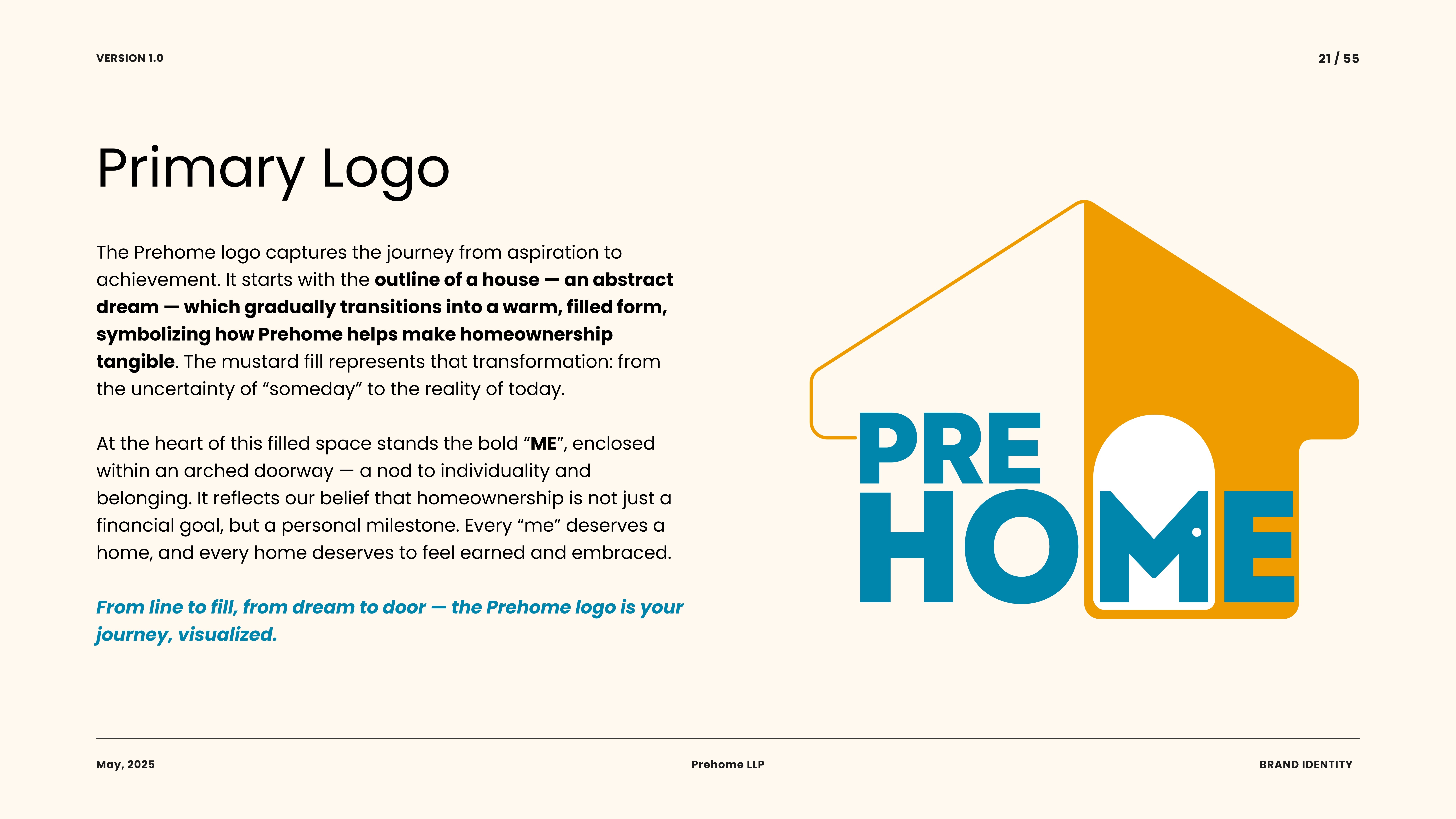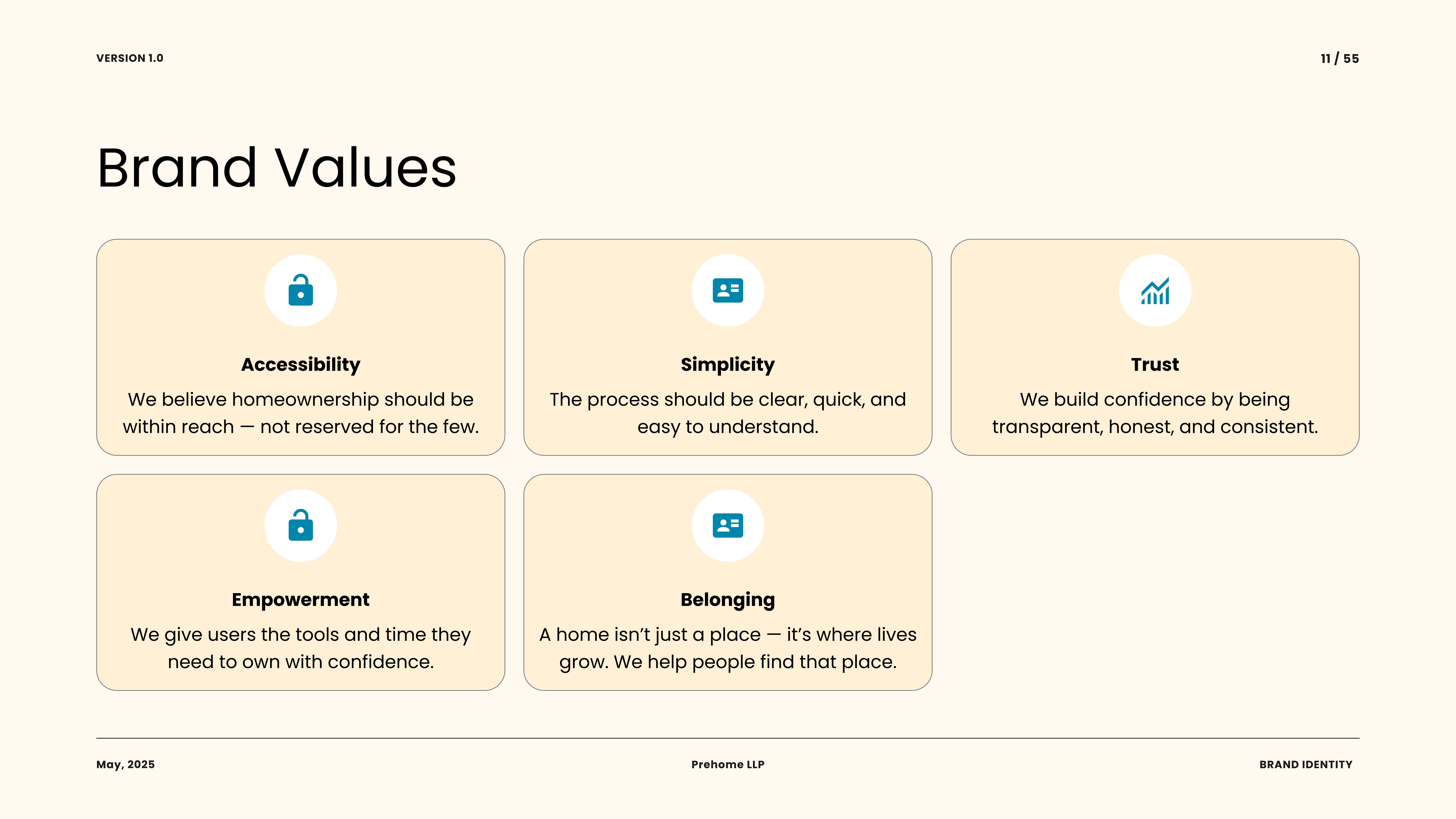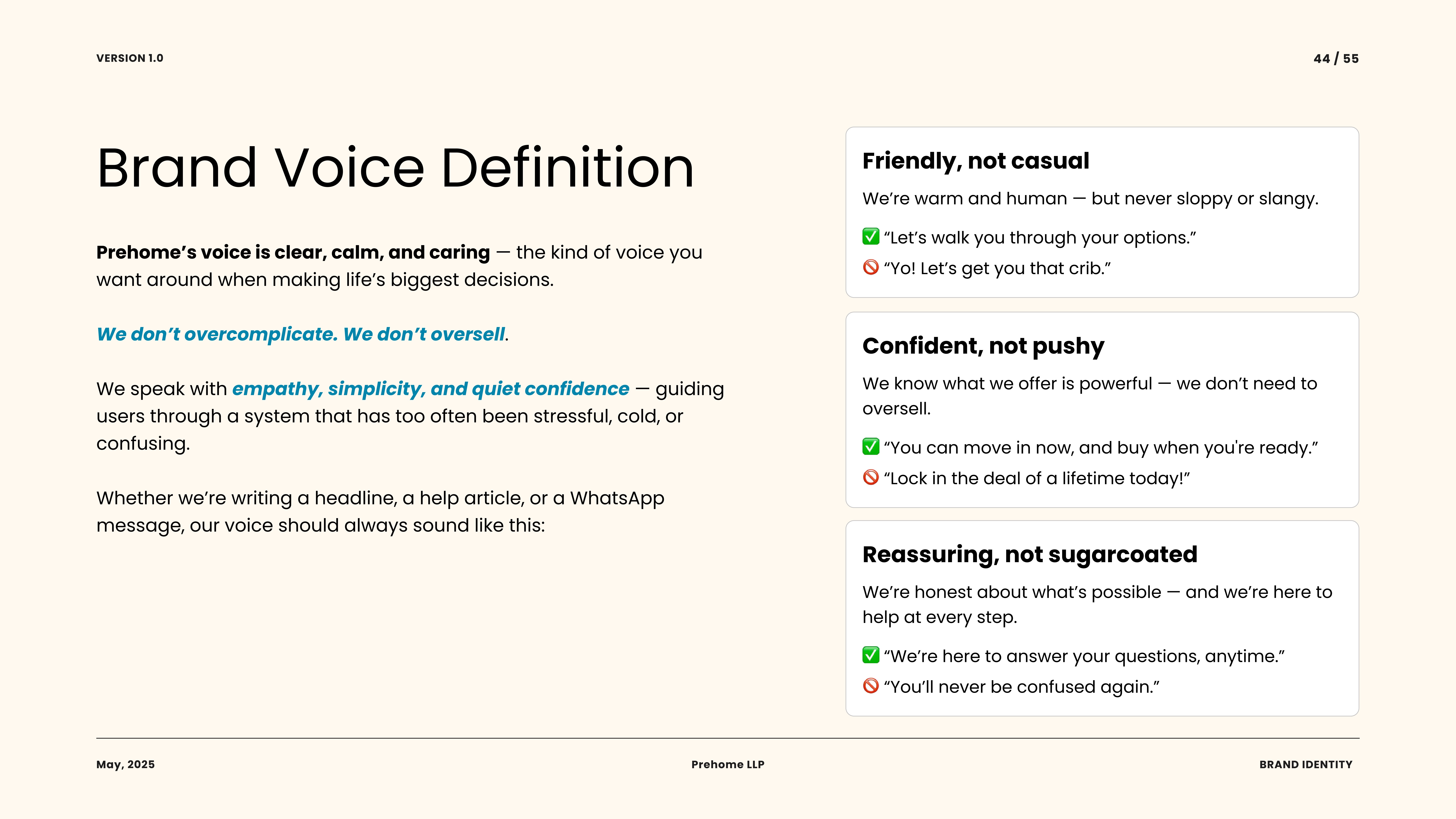 This is where the Prehome Brand Deck lives in the story— the culmination of six months of building, refining, and aligning emotion with design.