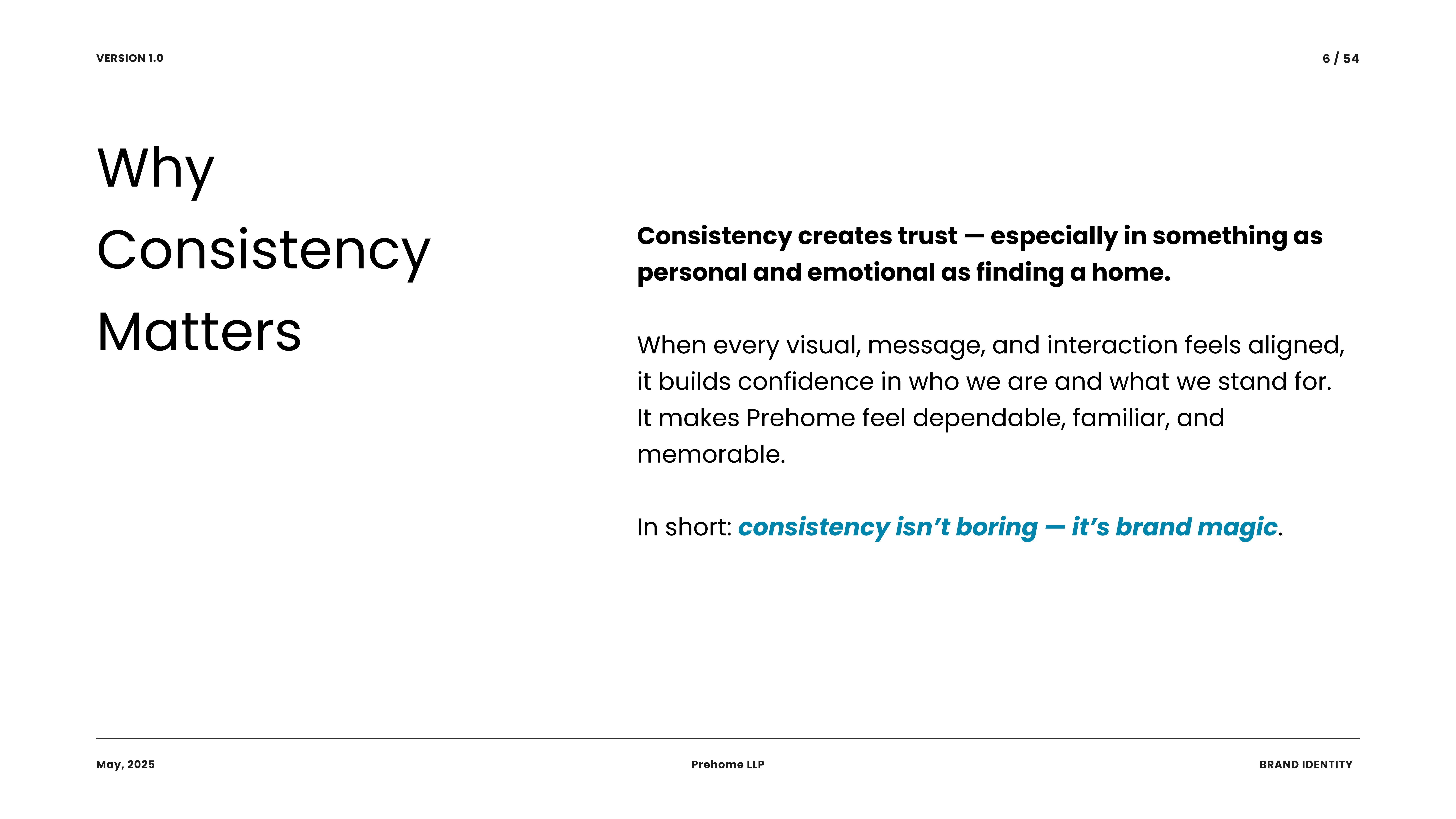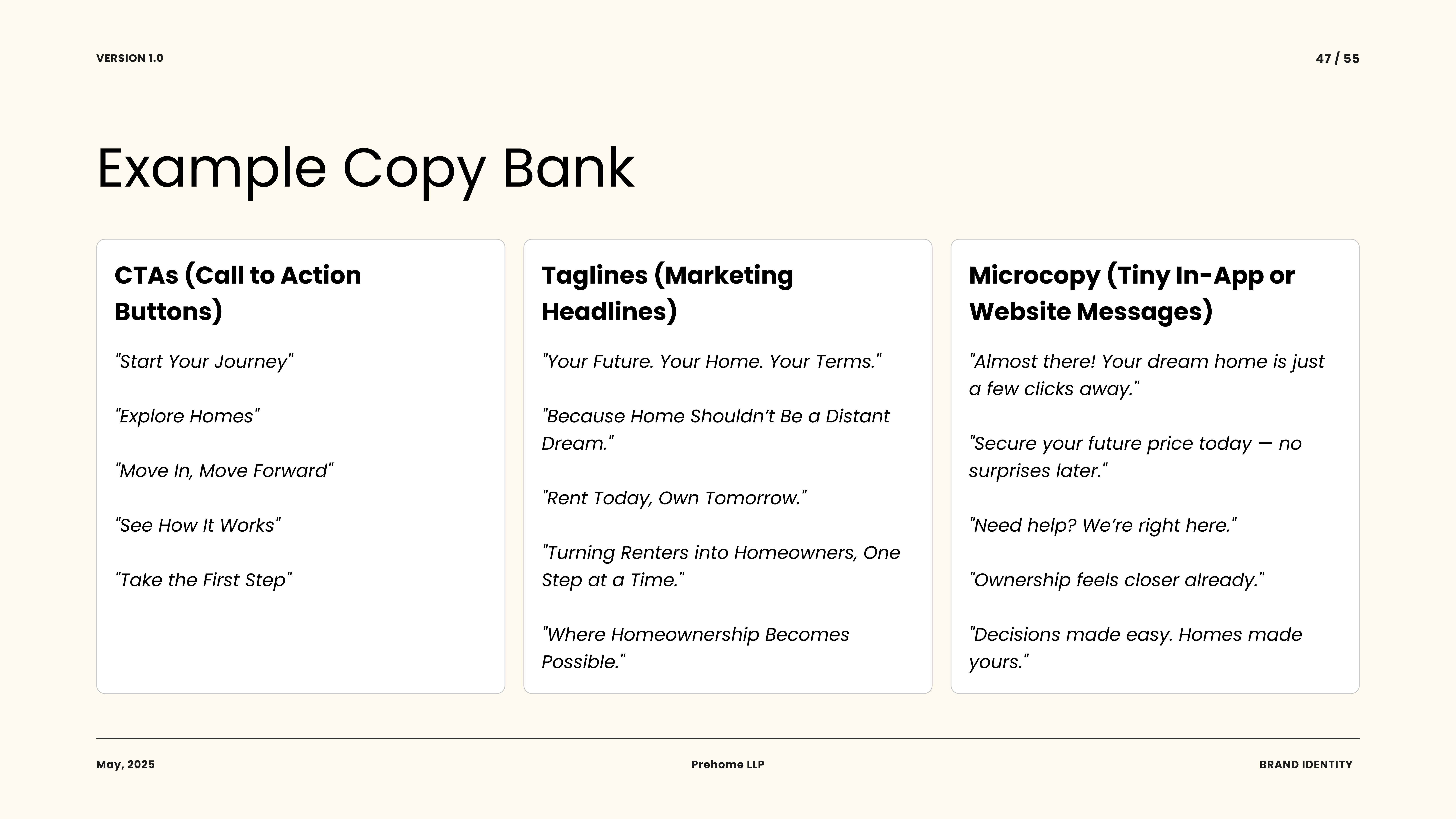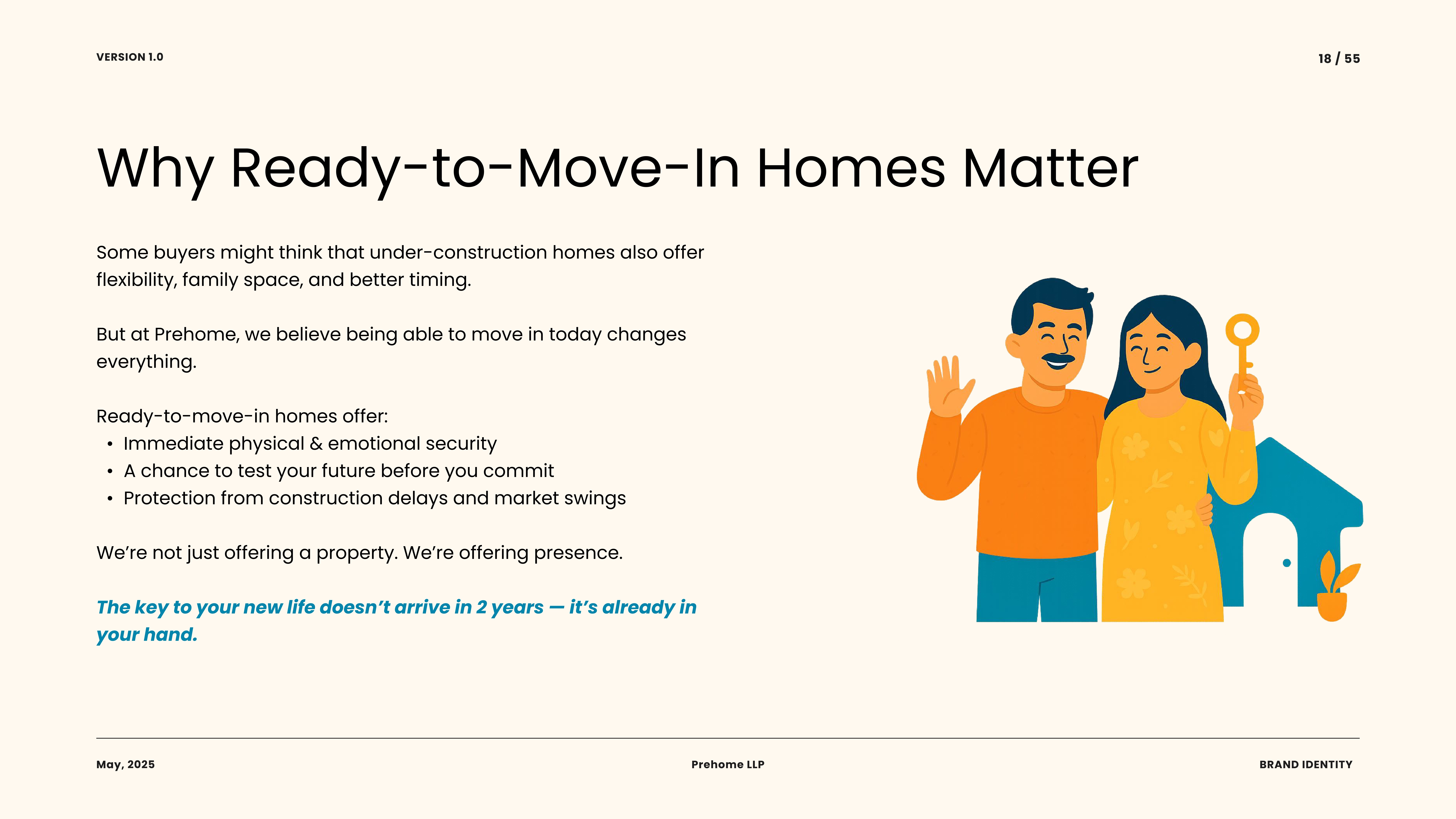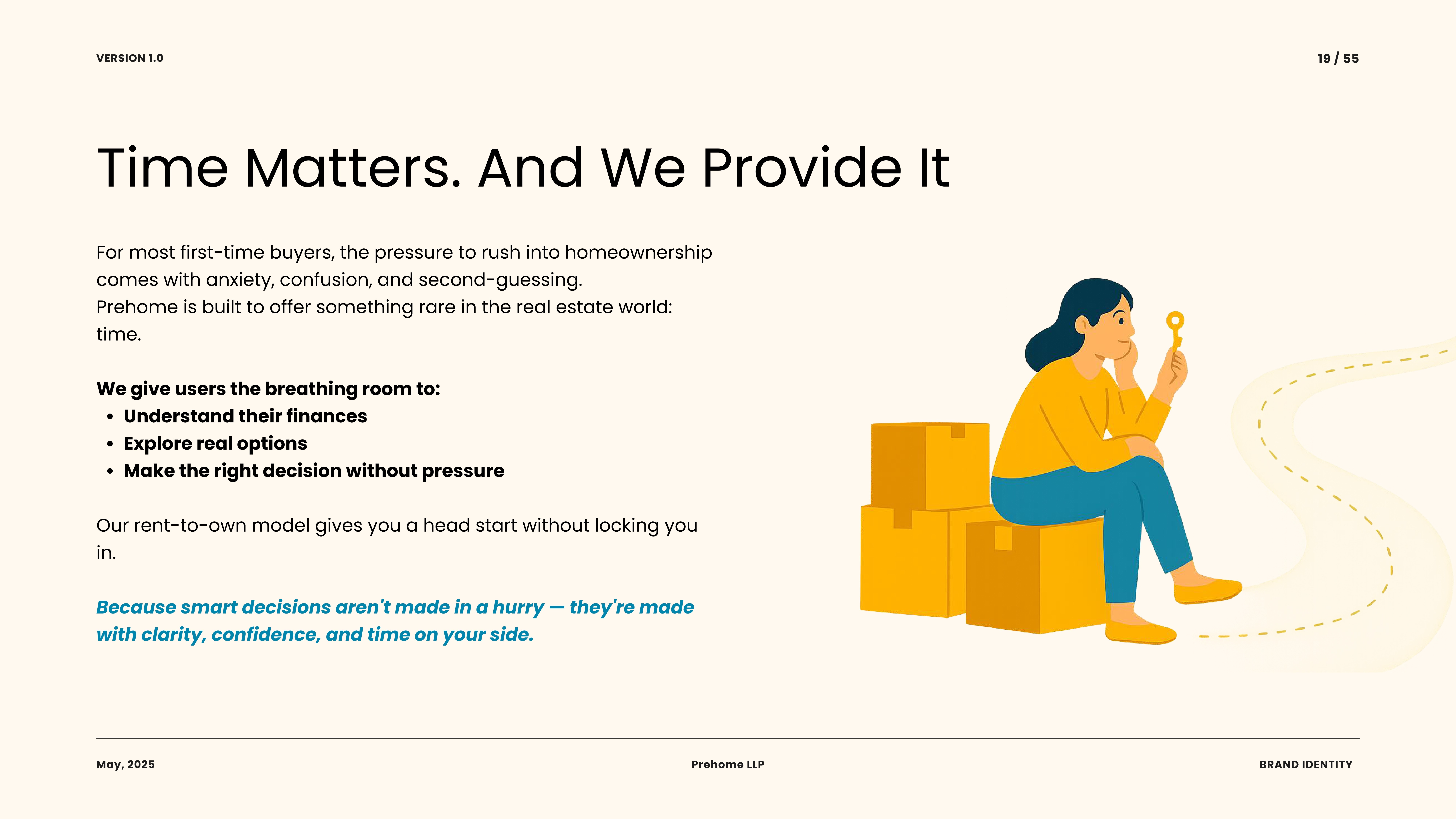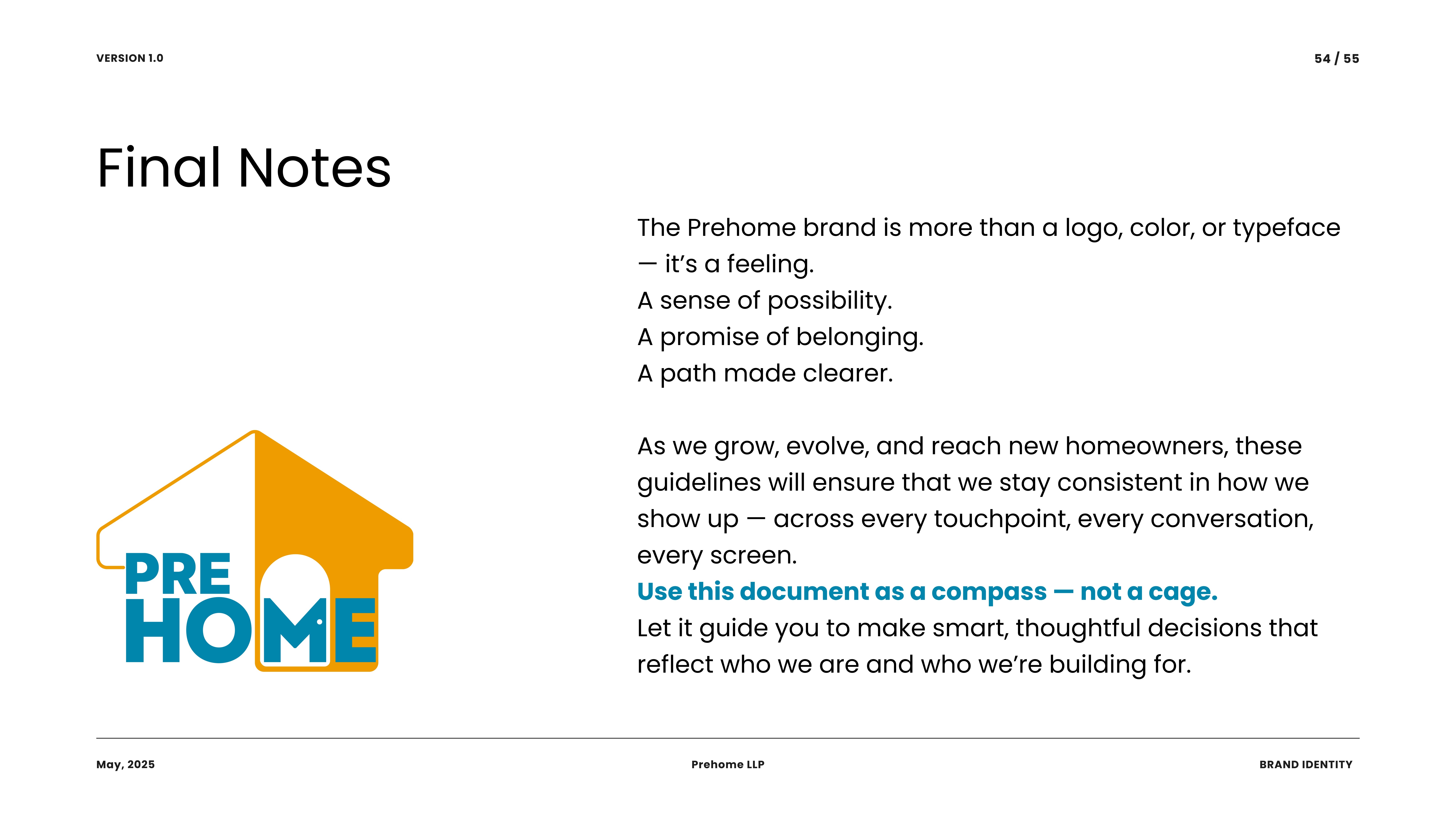 This is where the Prehome Brand Deck lives in the story— the culmination of six months of building, refining, and aligning emotion with design.