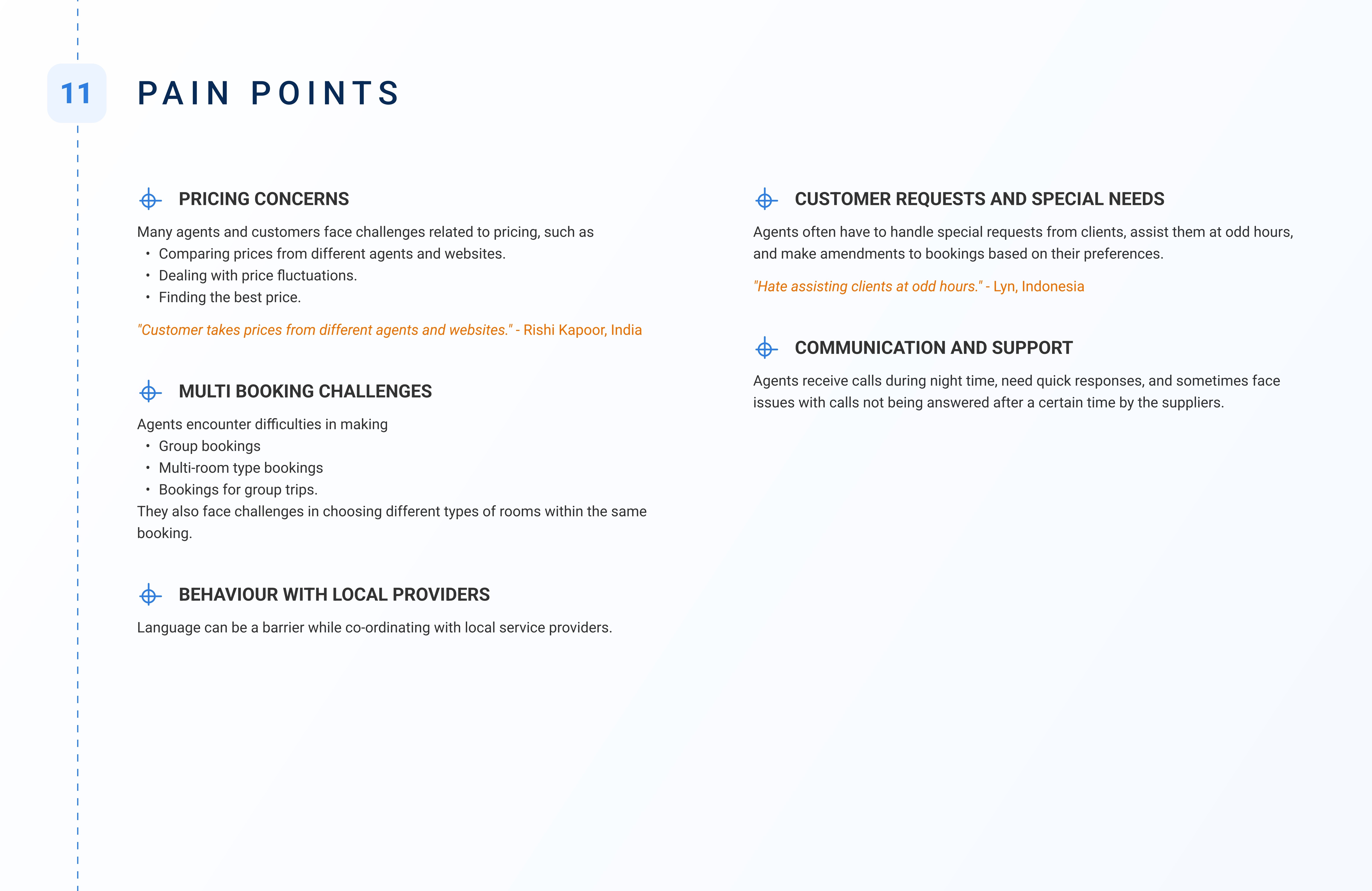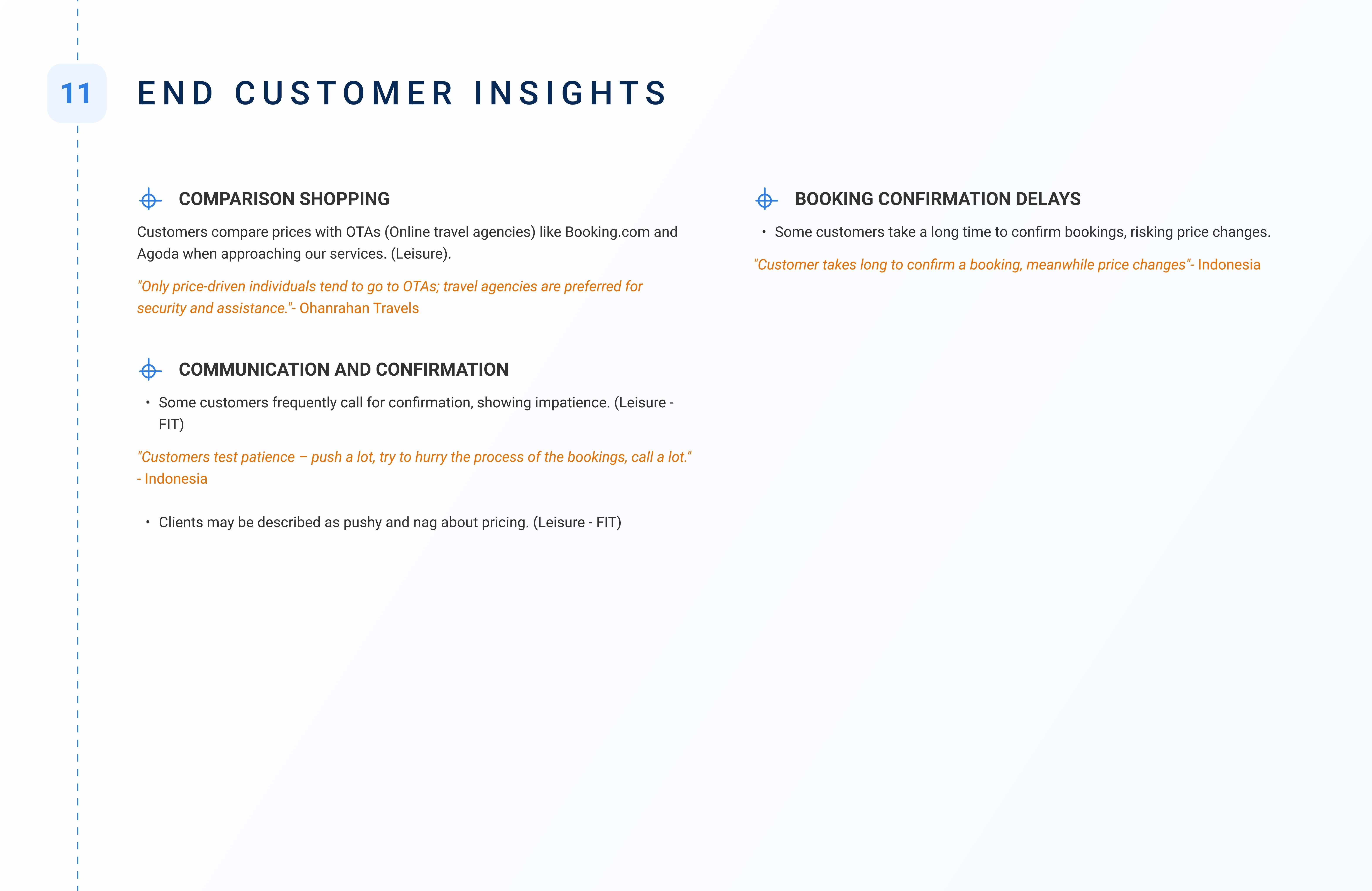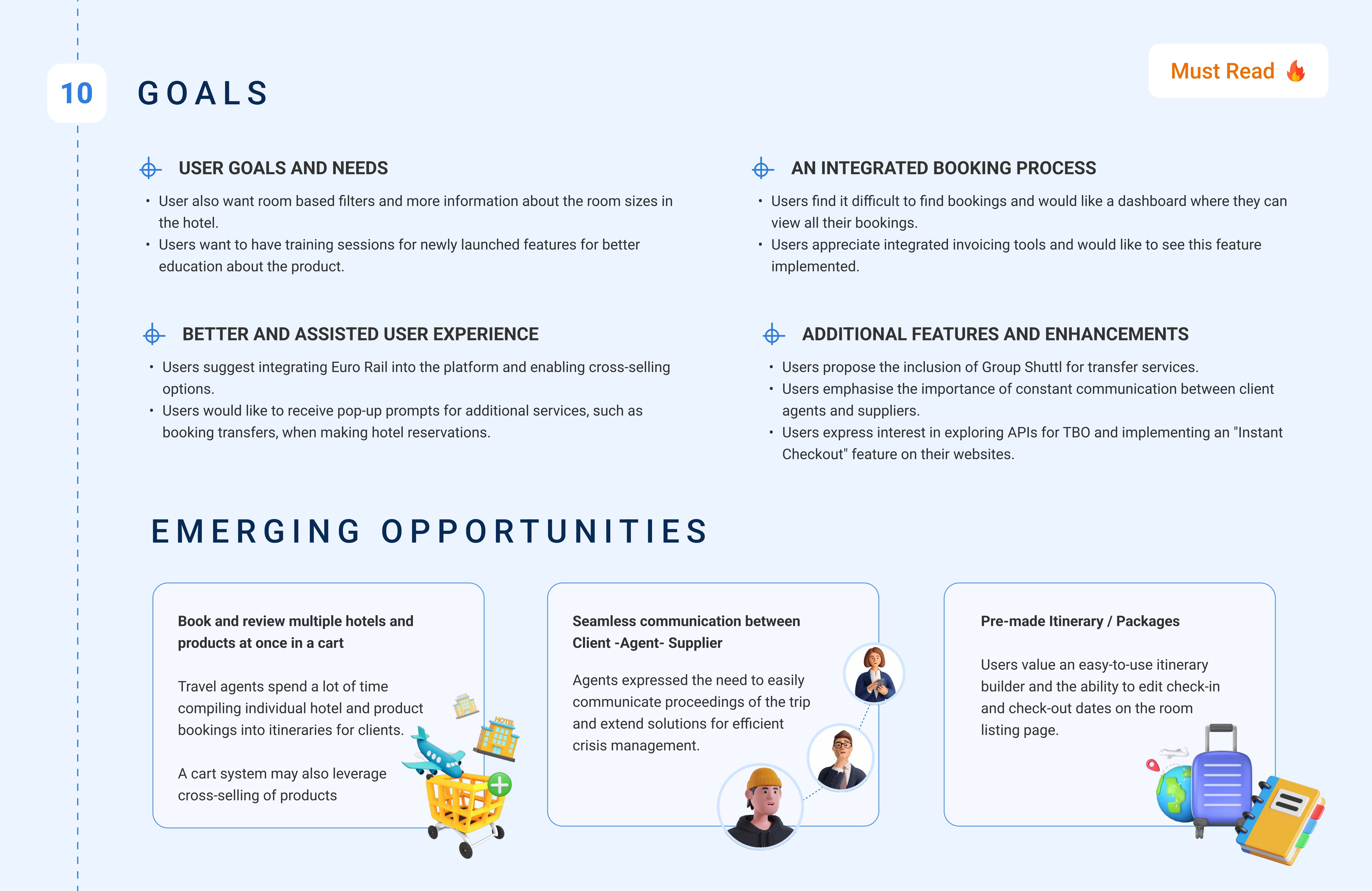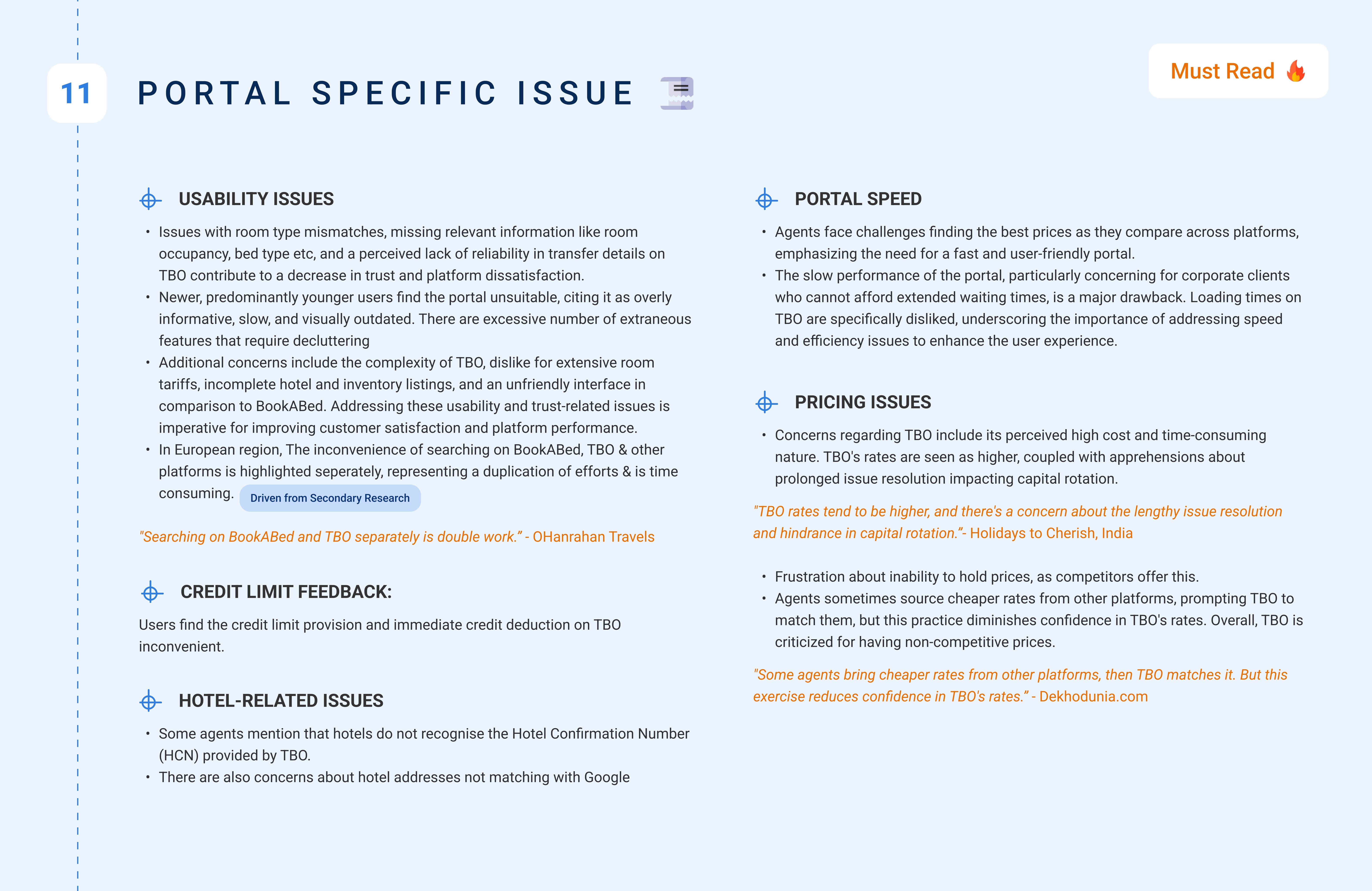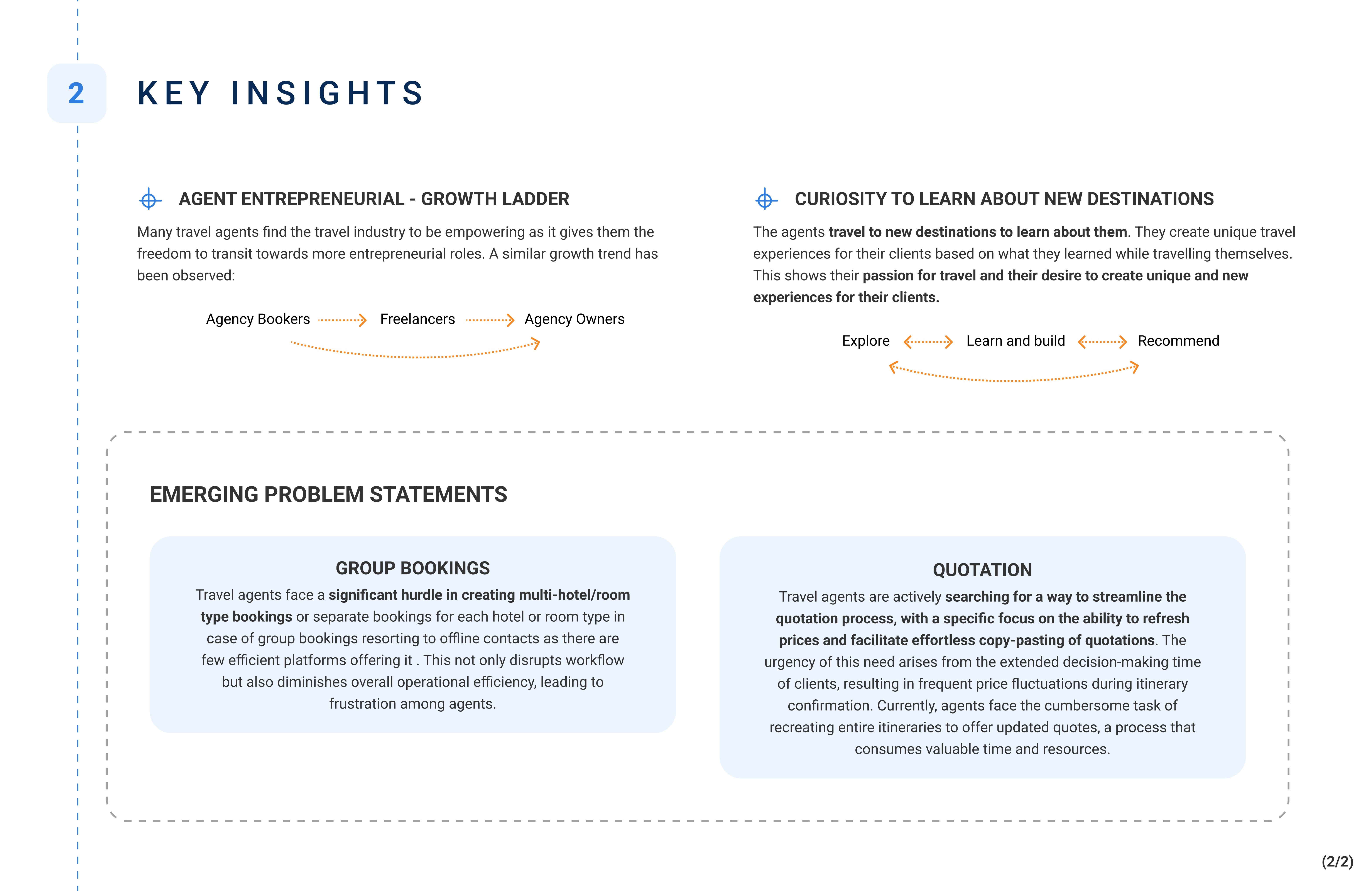 Created a research-to-design pipeline, ensuring insights directly influenced future feature roadmaps (e.g., quotation tool, multi-hotel booking module).