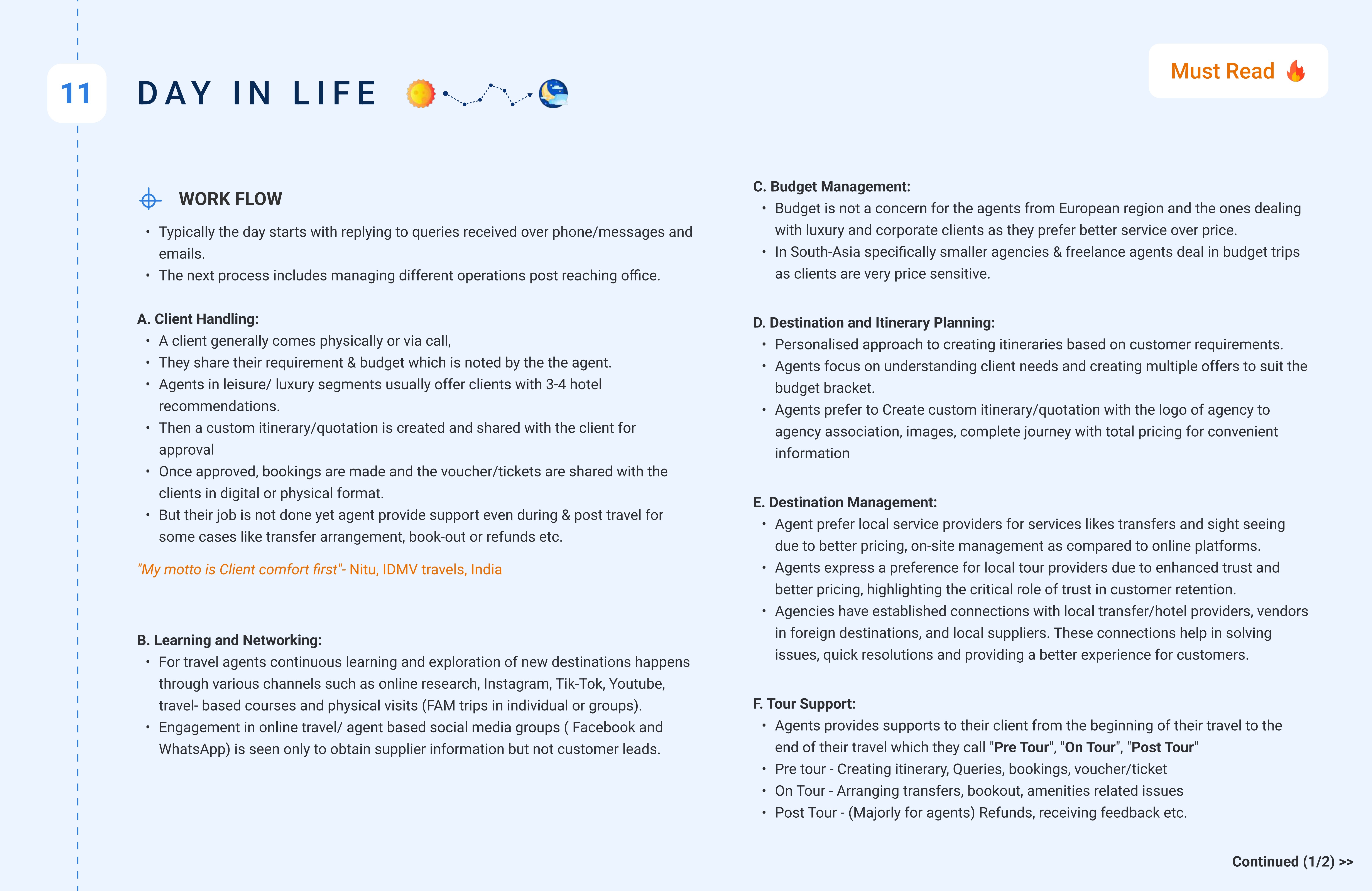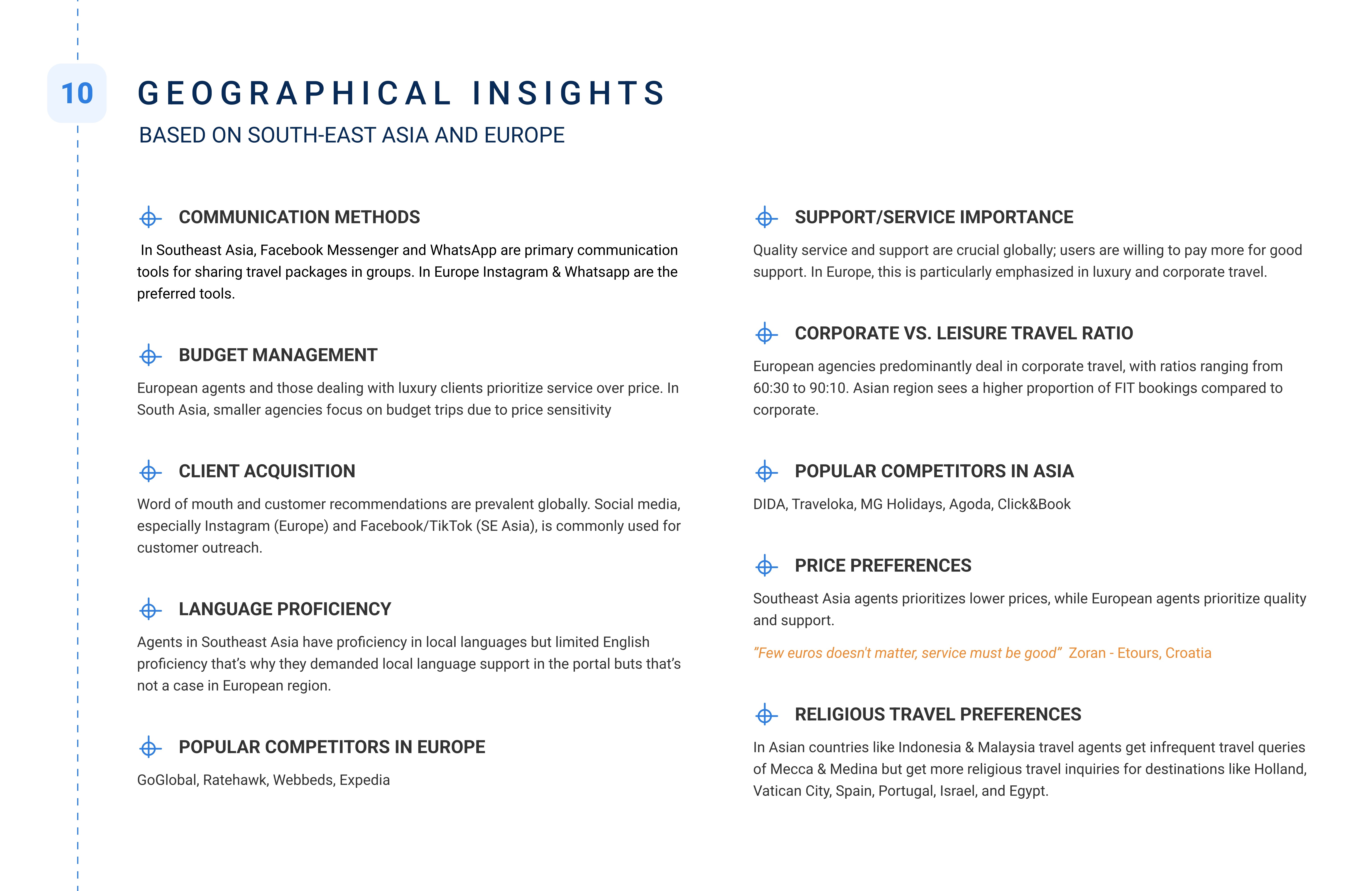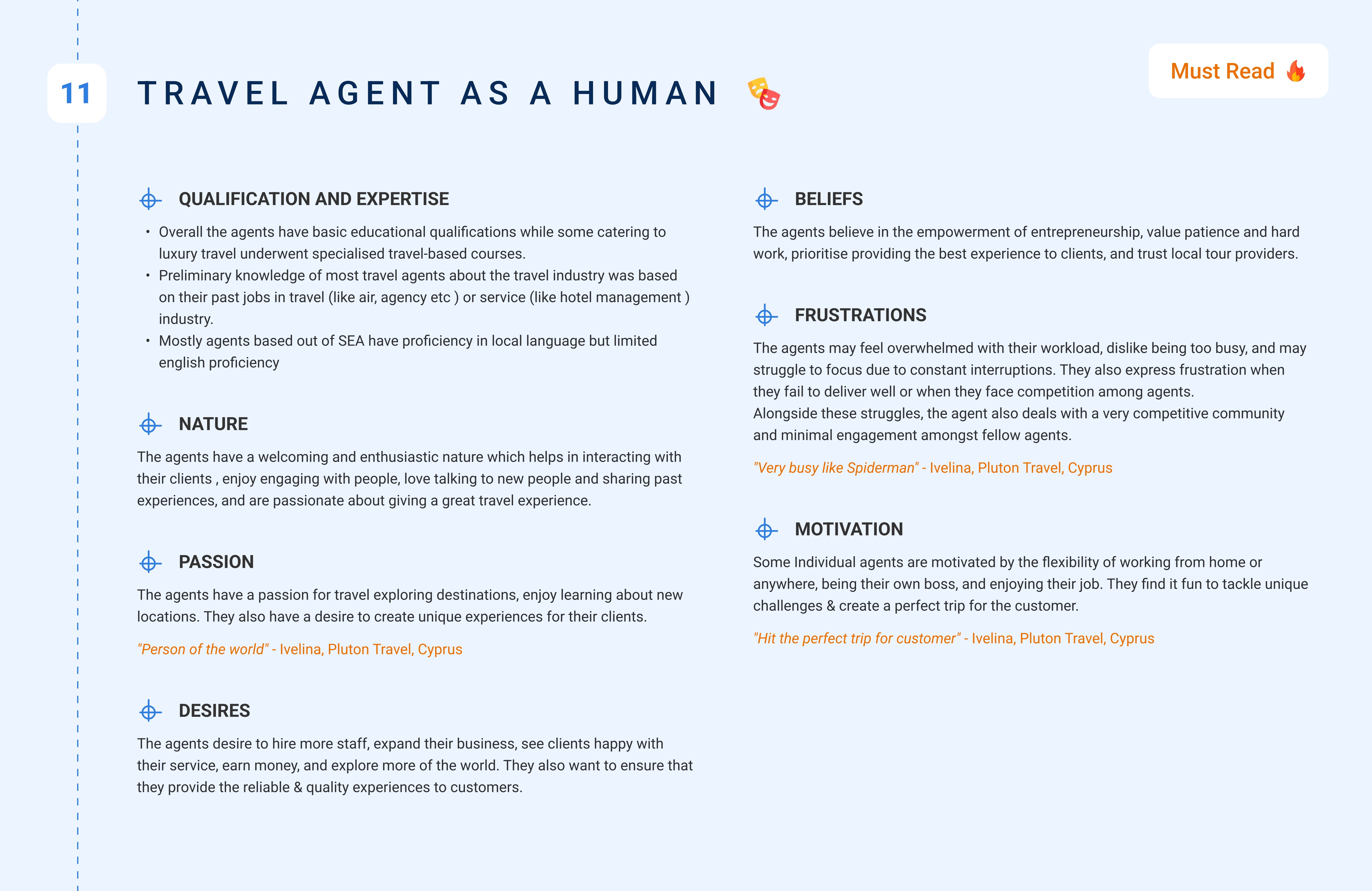 Conducting this multi-market research taught us that travel agents are not a single user group, they’re an ecosystem. Each region, business size, and experience level carried unique motivations, yet shared common frustrations around speed, trust, and visibility.